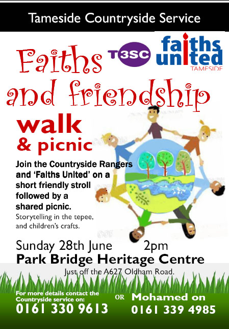 FaithsUnited (Tameside) in conjunction with the Tameside Countryside Service are holding a Faith and Friendship Walk to explore and appreciate our environment in particular our sources of water.