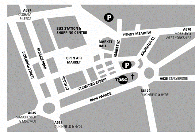 office is in Ashton Town Centre, about 10 minutes walk from both Ashton